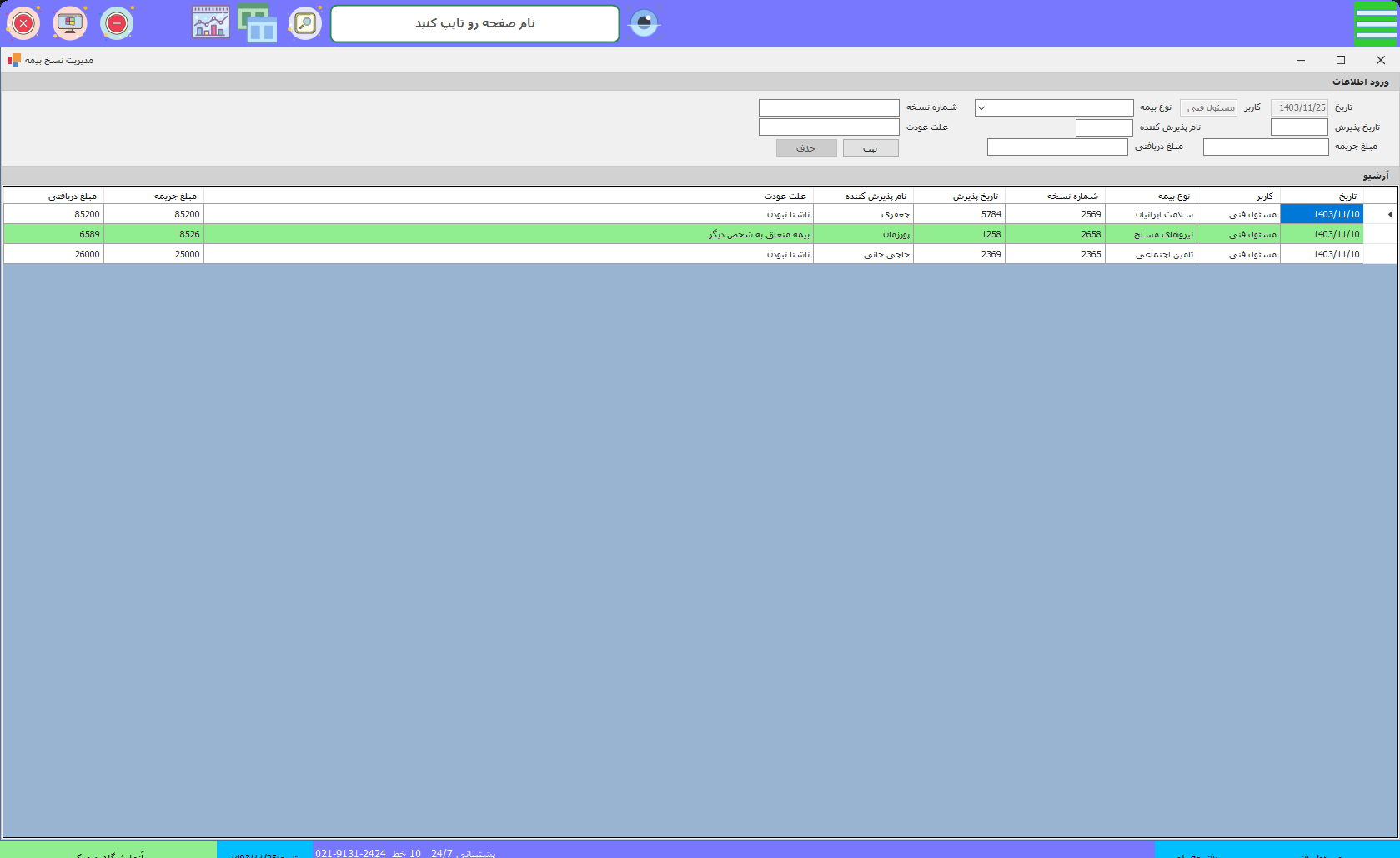 در این بخش شما میتوانید با قسمت های مختلفی کار کنید . در این قسمت شما اطلاعات علل تکرار تست را میتوانید وارد کنید. همچنین میتوانید مدیریت نسخ بیمه را داشته باشید . هم چنین میتوانید اطلاعات لیست آزمایشگاه های همکار و ازمایشات ارجاعی را در این قسمت وارد کنید. همچنین انواع پرسشنامه ها و نظرسنجی ها در این بخش موجود است .