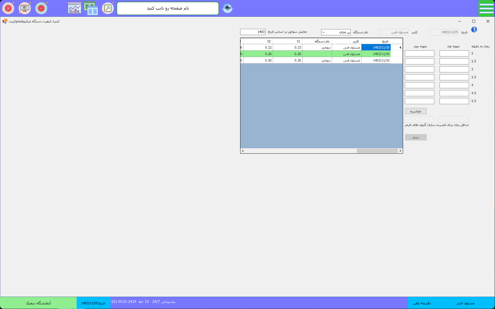 : منو مدیریت کیفیت => تجهیزات عمومی