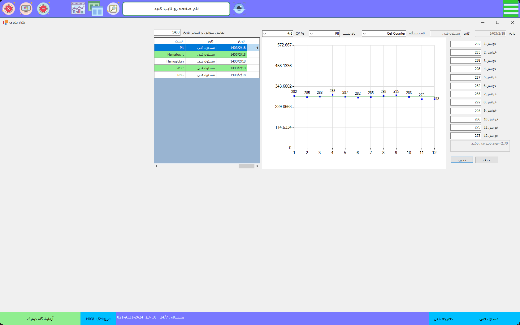 • مکان دسترسی : منو مدیریت کیفیت => هماتولوژی