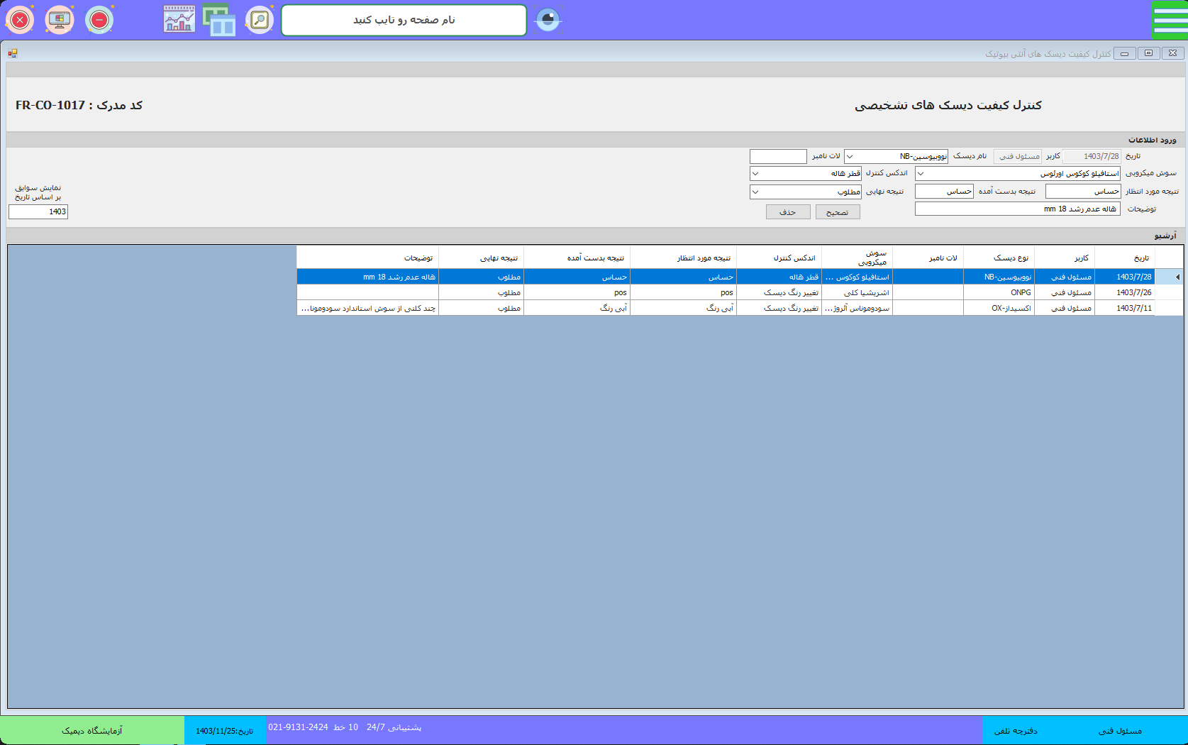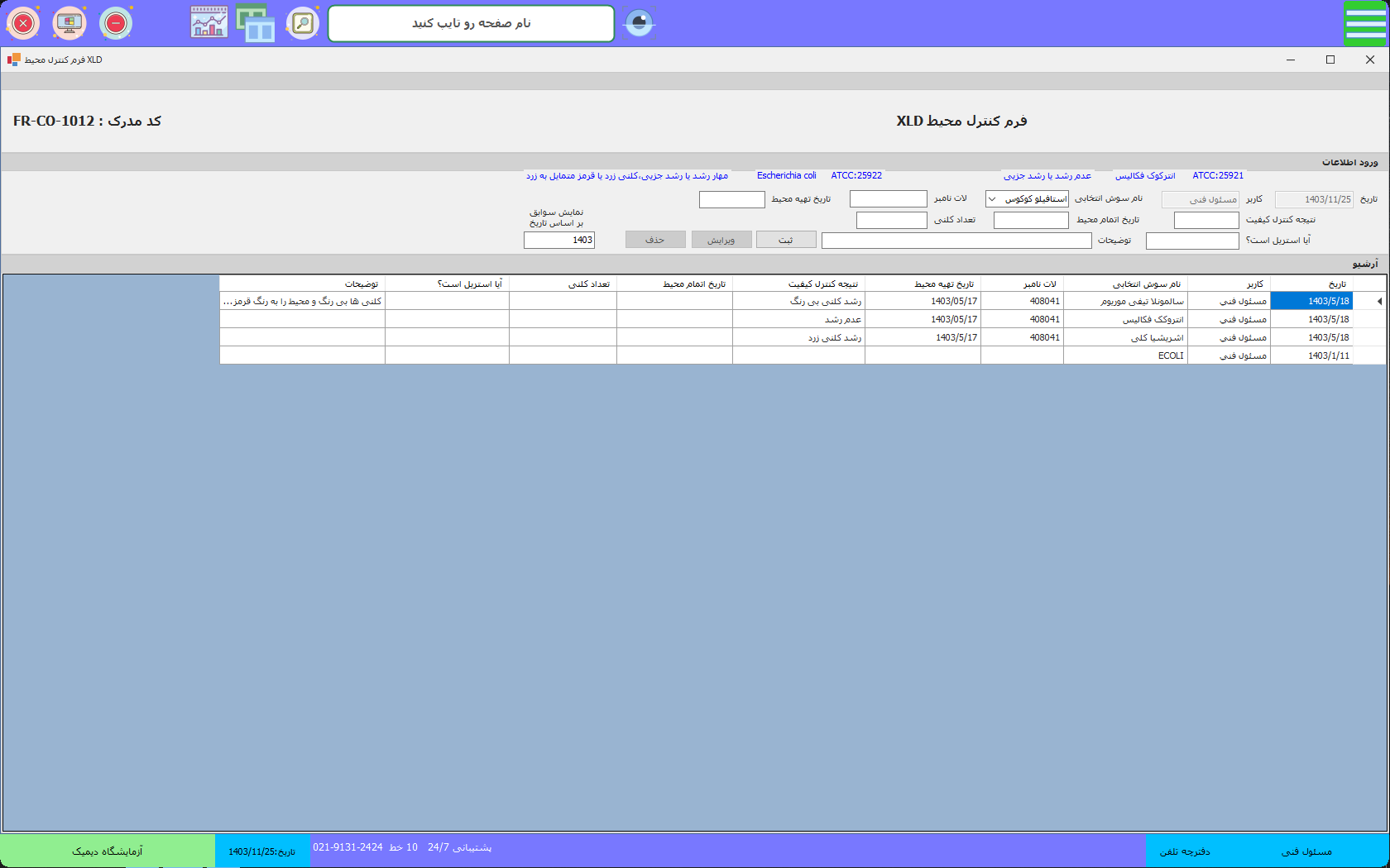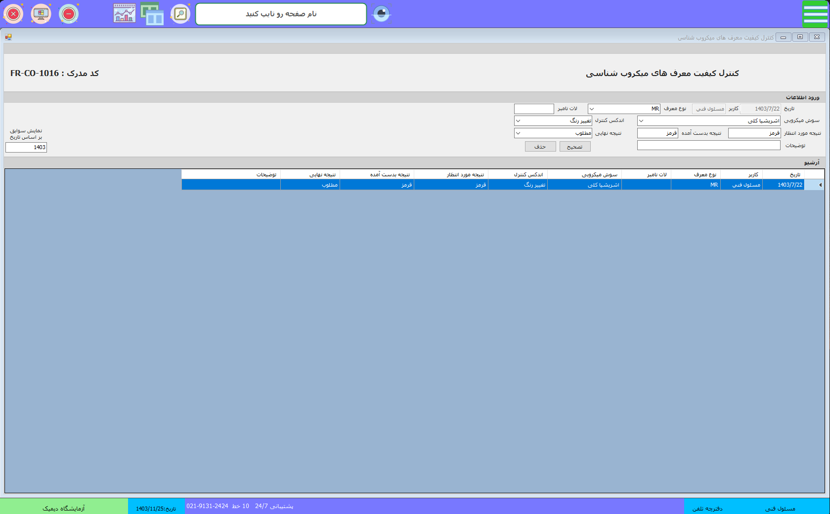 - مکان دسترسی : منو مدیریت کیفیت => بخش میکروب شناسی