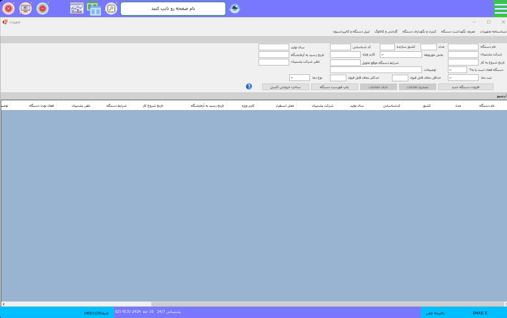 مدیریت تجهیزات و شناسنامه تجهیزات